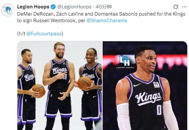 新赛季,威少将与拉文、德罗赞、小萨博尼斯联手,共同为国王队冲击季后赛的目标而战。