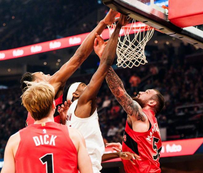 这一个比赛日,骑士坐镇主场迎来了和多伦多猛龙的背靠背对决,本场比赛巴恩斯攻防两端直接打爆了和自己同届的探花郎莫布里,在他的率领下,猛龙一度建立起了多达17分的领先优势,最终以126-113双杀骑士。