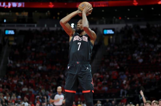 休赛期火箭用杰伦格林+狄龙+25年10号签+5个次轮签(59号签+26年自己手中的2个次轮+30年凯尔特人次轮+31年自家次轮)的代价,8换1从太阳换来杜兰特,交易发生后许多人都说火箭为了一名37岁的老将付出这么多代价到底值不值。杜兰特来到火箭用自己出色的表现证明了,这笔8换1不仅值而且非常值。本赛季至今杜兰特出战了火箭全部12场比赛,场均出场36.2分钟,得到25.9分4.7篮板3.4助攻1抢断0.7盖帽的全面数据,投篮命中率50%,三分命中率40%,罚球命中率88%依旧是联盟顶级得分手。杜兰特带给这支球队不仅仅是场均25+4+3的基础输出,他带给这支球队的是质变,本赛季火箭场均得分124.8,上赛季仅仅只有104提升了24.8分,这相当于让火箭上赛季多打一节球!