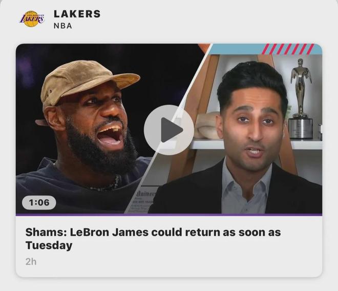 讲讲其他消息,同样来自Shams的报道,詹姆斯最快在北京时间11月19日湖人主场VS爵士比赛中复出,如果谨慎点的话,最好是在11月26日湖人主场VS快船的同城大战中复出。