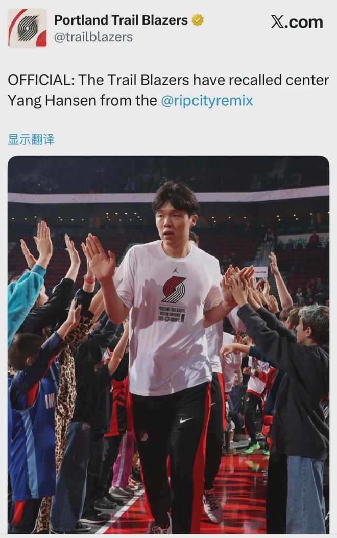还有一个不知好消息还是坏消息,开拓者官方宣布召回杨瀚森。